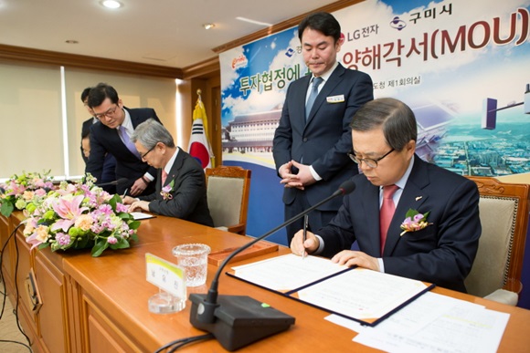 구미시(시장 남유진)와 LG전자(주)(사장 이상봉)가 태양광사업에 5,272억원 신규투자, 870명의 신규 일자리를 창출하는 대규모 투자계획을 1월 13일 경북도청 제1회의실에서 개최된 투자양해각서(MOU) 체결식을 통해 공식 발표했다.