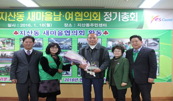 지산동(동장 배영숙)은 1월 18일에 동 주민센터 2층 회의실에서 윤창욱 경상북도의회 부의장, 정하영 시의회 기획행정위원장, 이재학 구미시새마을협의회장 및 지산동새마을협의회(회장 노정식, 유명혜)지도자 30여명이 참석한 가운데 2016년을 힘차게 출발하는 정기총회를 개최했다.