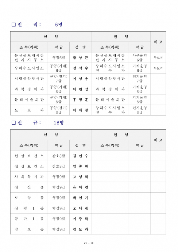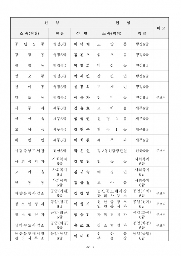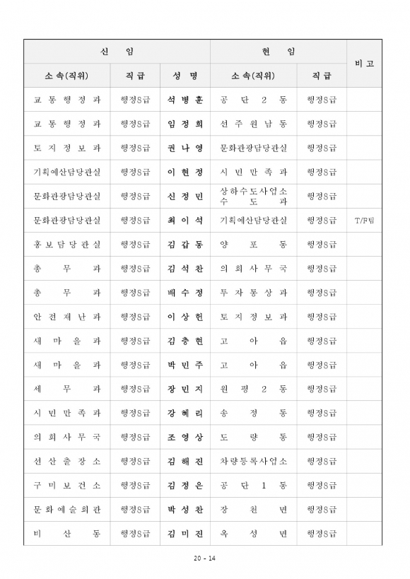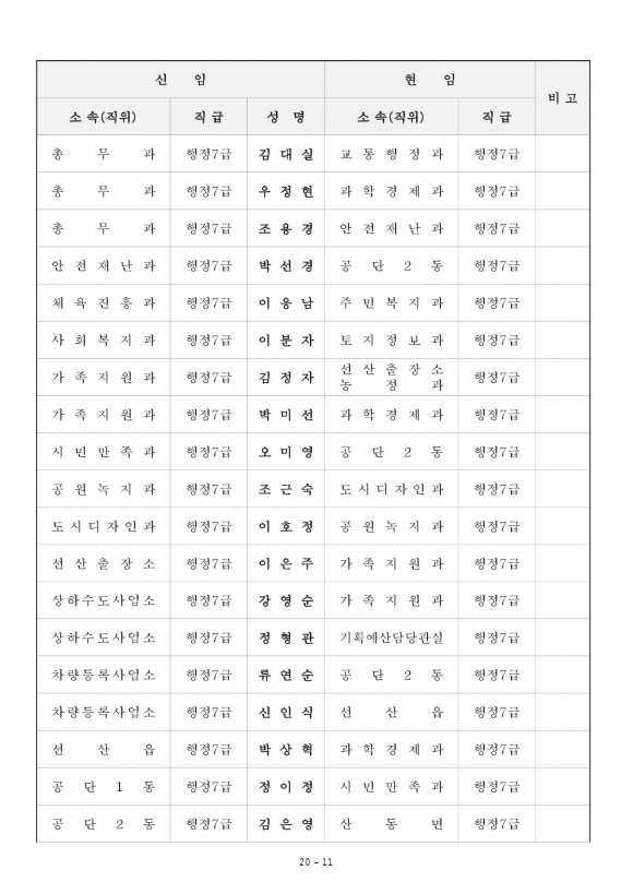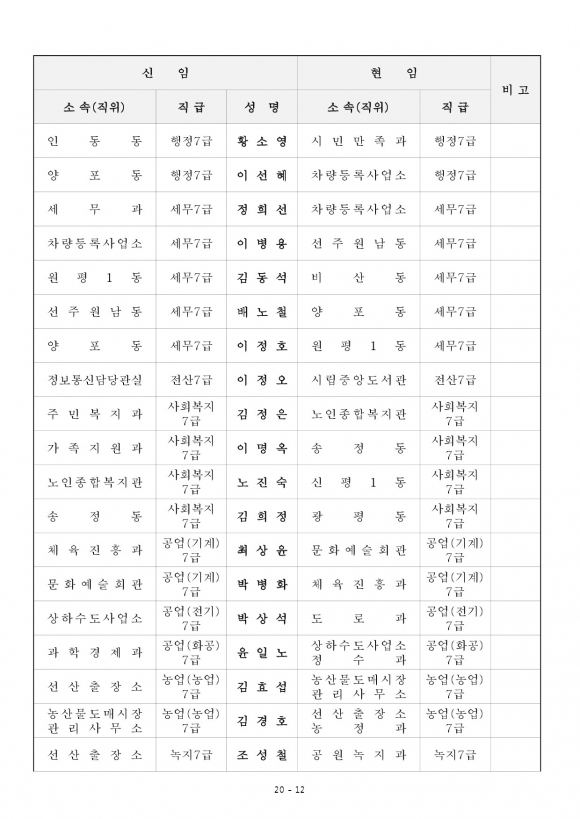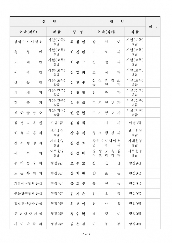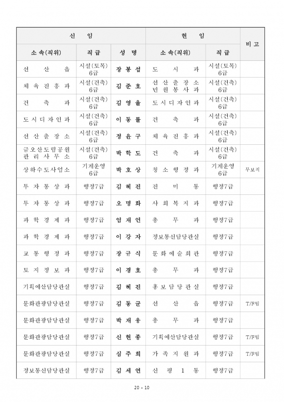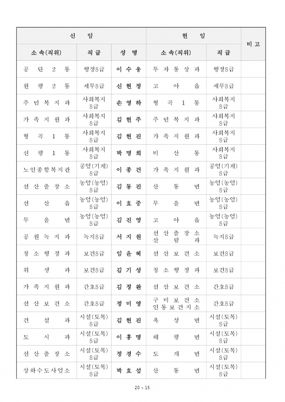 구미시(시장 남유진)는 1월 26일자 349명(승진 60, 전직6, 파견복귀1, 전보251, 신규18, 장기교육7, 복직4, 휴직2)인사이동 조서를 발표했다.