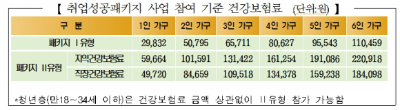 참여자에게 10 ~ 25만원의 참여수당이 지원되고, 특히 차차상위계층(중위소득 60%이하) 저소득층 참여자*(Ⅰ유형)의 경우 1단계 수료 이후 취업해서 3개월 이상 계속 근무 시 취업성공수당이 지원된다. * 4인 가구 기준 중위소득 60%는 2,634,861원 또한, 1단계 이상 수료한 참여자를 고용한 사업주에게는 1년간 최대 900만원의 고용촉진지원금을 지원한다. 취업성공패키지 사업에 참가 가능한 대상자는 만 18세 이상 만 64세 이하인 미취업자로, 차차상위이하 저소득층 가구원은 취업성공패키지Ⅰ유형으로, 중위소득 100%이하인 경우는 취업성공패키지Ⅱ유형으로 구분하여 참가 가능하며, 이는 가구원수별 건강보험료를 기준으로 참여유형을 분류한다.
