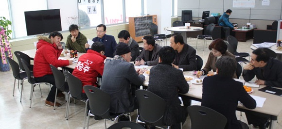 새누리당 백승주 구미갑 총선 예비후보와 구미시의회 일부 의원들이 1월 30일 선거사무소에서 구미시 현안 문제 논의를 위한 정책 간담회를 가졌다.