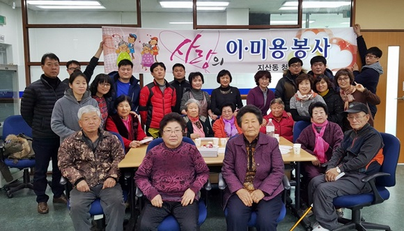 지산동(동장 배영숙) 청년회(회장 길순식)는 1월 31일 동 주민센터 2층에서 설을 앞두고 지산동 어르신들 모시고 무료 이·미용 봉사 활동을 펼쳤다.