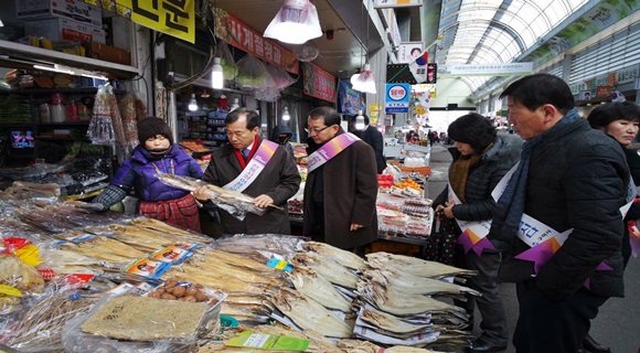 온누리 상품권을 이용해 제수용품과 지역 농수축산물을 구입하면서 설맞이 장보기를 실시했으며, 전통시장 이용 홍보캠페인을 통해 대형마트나 기업 형 슈퍼마켓 등의 진출로 어려움을 겪고 있는 상인들을 격려하며 시민들의 참여를 독려했다.