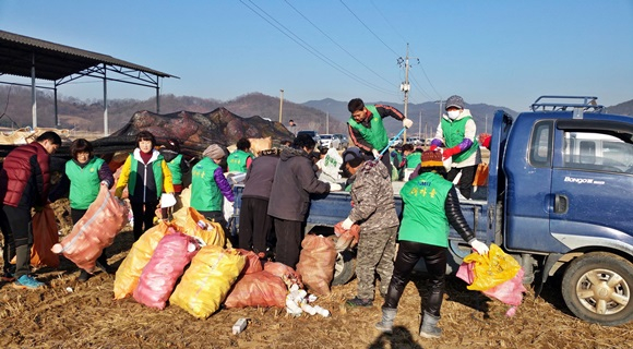 선산읍 남녀새마을지도자협의회(새마을협의회장 김종석, 새마을부녀회장 이성희)는 2월 3일 남녀지도자 30명이 참여한 가운데 깨끗한 환경지킴이 사업의 일환으로 관내에 산재한 농약공병 수거 작업을 대대적으로 실시했다.