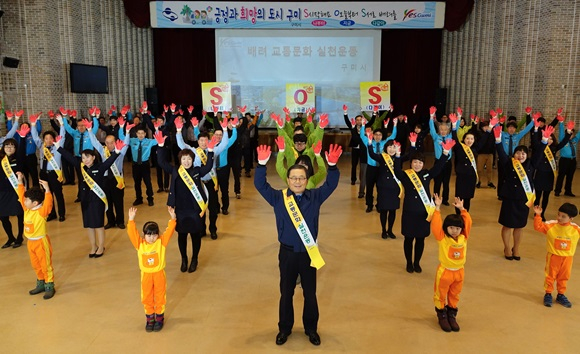 구미시(시장 남유진)는 2월 5일 시청 4층 대강당에서 ‘배려 교통문화 실천 운동’ SOS 1천만 릴레이 캠페인에 동참했다.