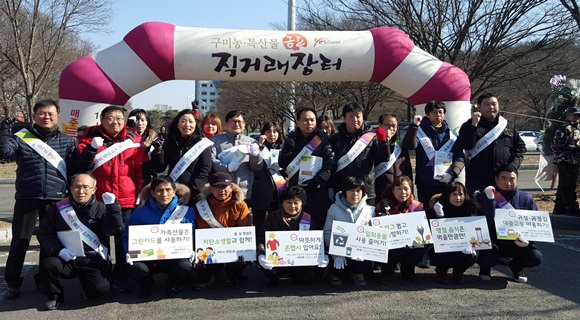 구미시(시장 남유진)는 2월 5일 농산물 금요 직거래장터가 한창인 금오산 대주차장에서 그린스타트 구미네트워크 회원, 그린리더, 공무원 등 50여명과 함께 ‘저탄소 설 명절 보내기’ 캠페인을 전개했다. 이번 캠페인은 ‘온실가스 1인 1톤 줄이기’ 국민운동의 일환으로 우리나라 최대 명절인 설을 맞아 전 시민이 저탄소 생활 실천을 통해 건강하고 의미 있는 명절을 보내며, 동절기 에너지 줄이기에 동참하자는 취지에서 시행됐다.