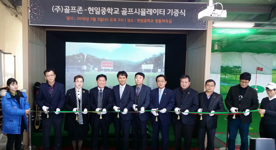지난 2월 3일 ㈜골프존(대표이사 장성원)은 2014년도부터 교육부와 함께 진행해온 ‘농산어촌학교 골프시뮬레이터 기증 프로그램’의 일환으로 현일중학교(교장 장상용)에서 골프시뮬레이터 기증식을 가졌다.