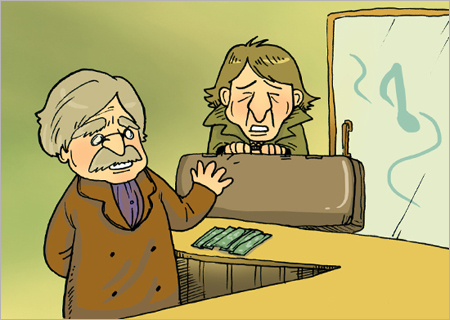 "무얼 찾으십니까?" 주인이 묻자 그는 "제발 이 바이올린을 사주세요. 배가 고파서 견딜 수가 없습니다. 무엇이든 먹어야 하니 얼마라도 좋습니다. 그냥 사주세요"