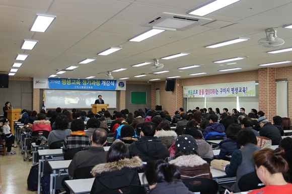 구미시 평생교육원(원장 박세범)은 2월 15일 2016년 평생교육 정기교육과정 78개 강좌(수강인원 2,100여명)에 대한 개강식을 수강생, 강사 등 200여명이 참석한 가운데 개최했다.