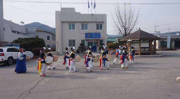 옥성농협풍물단(단장 강정연)은 2월 18일 면사무소에서 병신년 새해 정월대보름을 맞이해 면민의 풍년농사와 면민화합을 기원하는 ‘지신밟기 행사’를 가졌다.