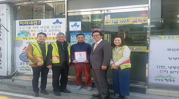구미시(시장 남유진)는 2월 18일 2016년 신규 ‘착한가게’ 가입 사업장 3개소(햇살어린이집, 점프업어린이집, 구미 남산골우리밀100%칼국수)를 방문해 현판 전달식을 가졌다.