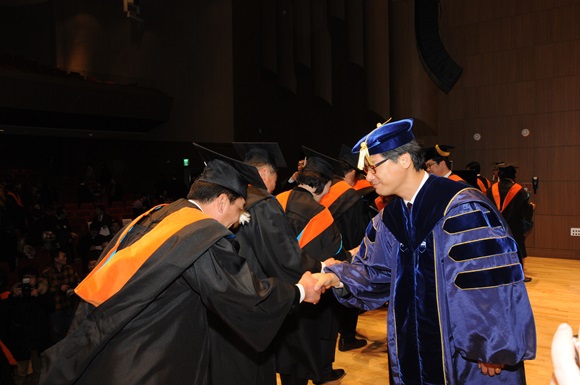 올해 학위수여식에는 학사 1,038명, 석사 121명, 박사 24명, 최고경영자과정 53명 등 총 1,236명이 학위를 받았다. 이날 학부 전체 수석을 차지한 기계시스템공학과 한병헌 학생이 27명의 성적 우수자들을 대표하여 최우수상을 수상했다.