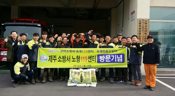 구미 옥계 남성의용소방대(대장 전병태)는 지난 2월 20일 제주소방서 노형 119안전센터(센터장 김광호) 관계자들이 구미를 방문해 소방대원들을 대상으로 제주소방서 소개 및 의용소방대 활동사항 등 향후 활동계획에 대한 설명을 가졌다고 밝혔다.