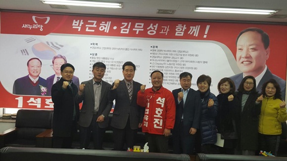 박근혜 팬카페 ‘근혜동산’ 중앙회 김주복 회장외 임원들이 2월 21일 새누리당 구미을 석호진 예비후보 선거사무소를 방문해 전폭적인 지지를 선언했다.