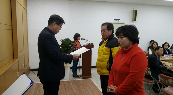 이날 총회는 1월 26일자 인사이동에 따른 직원 소개에 이어, 2월 새롭게 선출된 신임통장 위촉장 수여가 이뤄졌다.