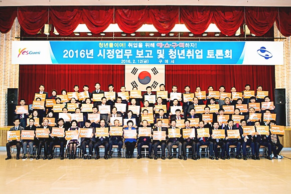 이러한 가운데 지난 12일에는 최근 이슈가 되고 있는 청년취업 및 일자리 창출을 위해 청년CEO, 여성·대학 일자리 유관기관 관계자, 기업인 등이 참여하여 청년취업 토론회를 개최하고 ‘청년취업 예·스·구·미 프로젝트’를 발표했다. (예·스·구·미 : 예정된 일자리는 없다. 스마트한 젊은이여 구미에서 미래를 열어가자)