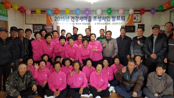 건강새마을 조성사업은 2014년부터 3개년 사업으로 표준화 사망률과 건강행태조사 결과를 바탕으로 건강관리가 필요한 지역을 선정해 주민들의 우울감 해소와 스트레스 관리를 위한 노래·체조교실, 치매예방교실을 운영한다.
