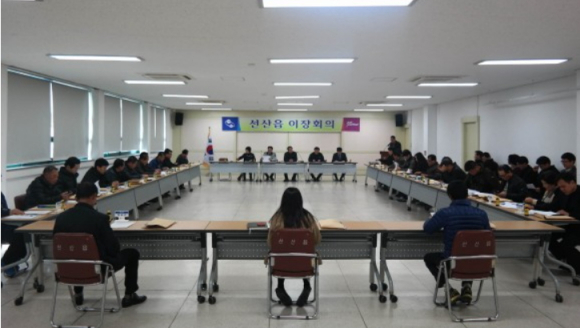 선산읍(읍장 윤영술)은 3월 4일 읍사무소 2층 대회의실에서 시·도의원, 지역 기관단체장 및 27개리 이장 등 40여명이 모인 가운데 3월 이장회의를 개최했다.