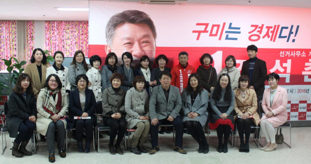 장석춘 구미을 새누리당 총선 예비후보는 3월 9일 보육문제로 어려움을 겪고 있는 민간 어린이집연합회 회원들과 함께 근무여건 실태와 현안 문제점을 파악하고, 처우개선 방안 등을 약속했다.