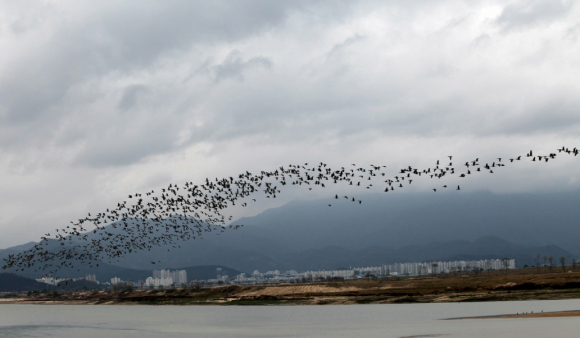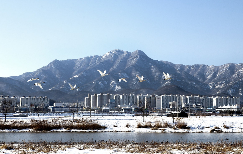 구미시(시장 남유진) 해평습지와 강정습지(230만평)가 두루미과 희귀철새들의 겨울나기 명소로 각광을 받고 있다.