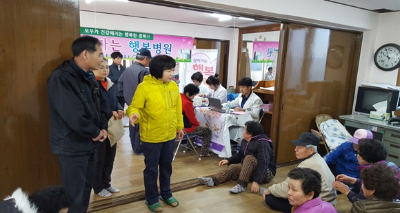 옥성면(면장 이찬우)은 2016년 3월 15일 농소1리 경로당에서 김천의료원 진료팀 10여명이 참여해 ‘2016년 찾아가는 행복병원’을 운영했다. 이날 봉사활동은 선산보건소와 김천의료원 주관으로 실시됐으며 농소1리 주민뿐만 아니라 인근마을 주민들도 함께 참여해 초음파 진단, X-선 촬영, 골밀도·심전도·소변 검사, 한방진료 등을 실시했다.