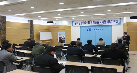 국세청에서는 3월 15일 세금문제 현장소통의 날에 전국상공회의소와 지방국세청 및 관할세무서가 함께하는 세정간담회를 개최했으며 납세현장의 애로 및 건의사항을 청취했다. 구미상의에서 개최된 세정간담회에서는 조상욱 구미세무서장의 인사에 이어 박기탁 차석의 국세행정 운영방향(국세대리인제도, 권리보호 요청 제도, 홈택스 민원 증명)에 대한 설명이 있었으며, 권용삼 세무사의 법인세 신고관련 설명이 진행됐다.