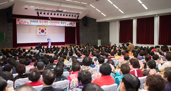 구미시(시장 남유진)는 3월 16일 평생교육원 강당에서 남유진 구미시장, 김태환 국회의원, 김익수 구미시의회 의장, 윤창욱 경북도의회 부의장을 비롯한 장수대학 시민대학원 수강생 600여명 참석한 가운데 ‘2016년 장수대학 및 시민대학원 개강식’을 개최했다.