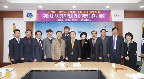 구미시(시장 남유진)는 3월 18일 시청 3층 중회의실에서 시장공약사업 이행평가단(이하 평가단) 회의를 개최했다.