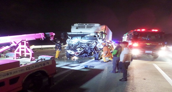 이날 구조된 허씨(남, 37세)는 화물차를 타고 경부고속도로 하행선을 주행 중 앞서가던 차(트레일러)를 추돌해 차량이 찌그러져 빠져 나오지 못하고 있었다.