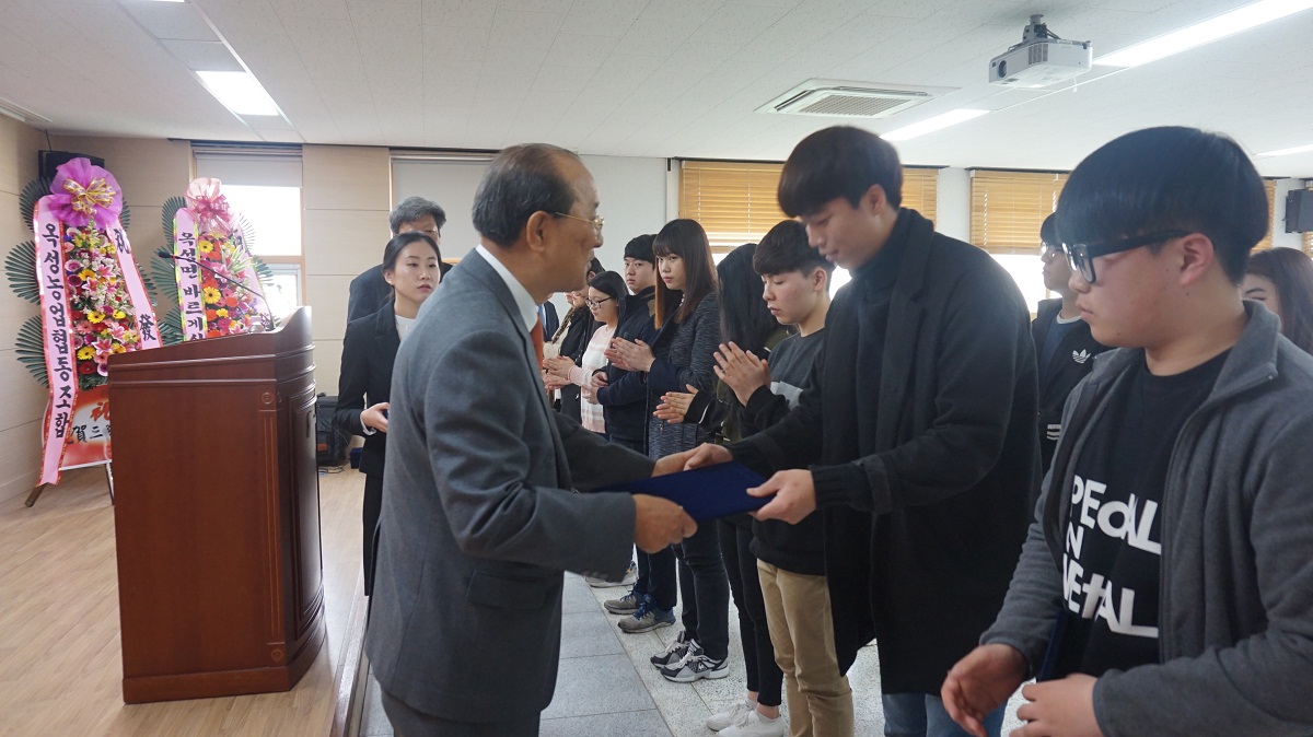올해는 신입생 6명, 재학생 14명 등 20명에게 장학금 100만원씩을 지급했으며, 올해까지 연인원 408명에게 4억3천5백만원의 장학금을 전달해오고 있다.