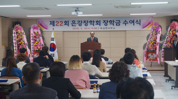 옥성면(면장 이찬우)는 3월 19일 옥성면사무소 2층 회의실에서 엄기섭 은강 장학회 이사장, 도·시의원, 관내 기관장, 은강 장학회 임원 및 장학생 20명과 학부모 등 약 50여명이 참석한 가운데 ‘제22회 은강 장학회 장학금 수여식’을 개최했다.