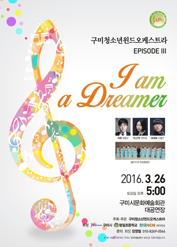 이번 제3회 정기연주회는 자신의 미래를 생각하며 꿈을 가지고 항상 도전하는 청소년이 된다는 의미에서 ‘I am Dreamer’를 부제로 총11곡의 주옥같은 음악을 연주할 예정이다.