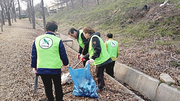 회의가 끝난 후에는 꽃샘추위로 쌀쌀한 날씨에도 불구하고 원지교에서 금오천 사이 도로변 일대의 방치된 쓰레기를 수거하며 자연정화활동을 펼쳤다.