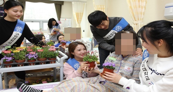 [구미IT뉴스] 구미대학교 홍보대사‘키우미’6기 학생들이 3월 29일 구미시립노인요양병원을 방문해 병실마다 화사한 봄꽃을 전달하며 어르신들의 마음을 기쁘게 했다.