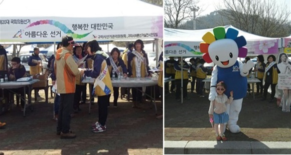 [구미IT뉴스] 구미시 선거관리위원회는 오는 4월 13일 실시하는 제20대 국회의원선거와 관련해 유권자들을 대상으로 선거관심 유도 및 투표참여를 당부하고 유권자와 후보자간 소통의 장을 마련하기 위해 아름다운 선거 홍보 캠페인을 실시했다. 이번 행사는 선주원남동 꽃길축제와 연계해 축제에 참석한 일반 시민들을 대상으로 다양한 행사를 실시했다.