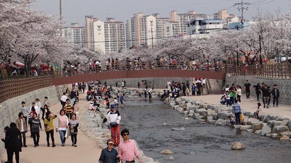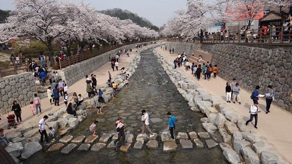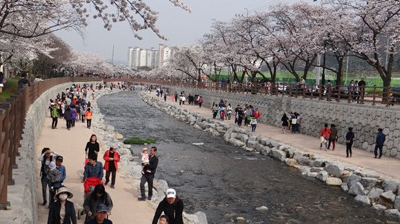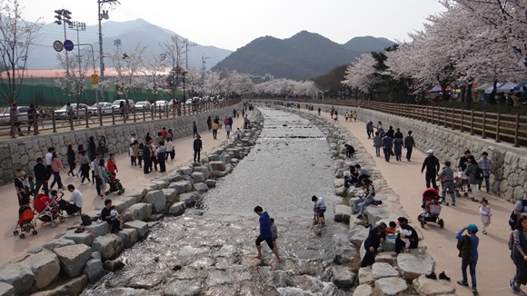 [구미IT뉴스]구미시는 ‘물 순환형 하천정비사업’으로 깨끗한 물이 상시 흐르는 금오천을 금오산 꽃길 축제에 맞춰 올림픽교에서 금오초교까지 0.5km 구간에 대하여 3월30일 추가 개통했다. 금오천은 2015년 4월 1일 1단계사업 완료 후 시민들의 휴식공간으로 이용되고 있으며, 금번 개통으로 1.5km에 이르는 하천정비로 재해예방사업을 완료했으며, 또한 금오천 산책로를 따라가며 꽃길, 징검다리, 목교로 재미와 볼거리까지 더해진 하천으로 각광받고 있다.
