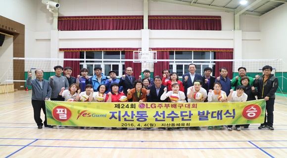 [구미IT뉴스] 지난 4월 4일 지산초등학교 체육관에서 지산동체육회 주관으로 주부배구선수단을 비롯해 윤창욱 경상북도의회 부의장, 정하영 기획행정위원장, 신현덕 지산초 교장 및 관내 기관 단체장과 체육회 임원 등 50여명이 참석한 가운데 제24회 LG기 주부배구대회 우승을 향한 선수단 발대식을 가졌다.