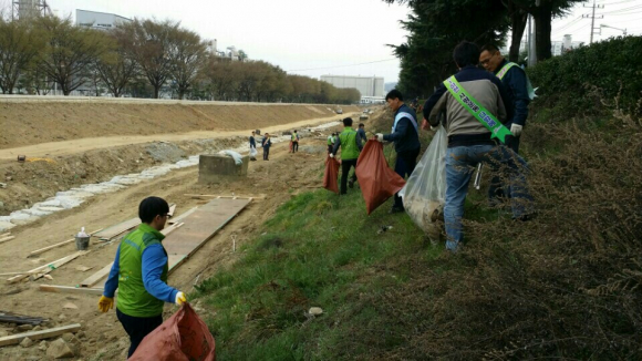 이번 정화활동은 친환경 생태공간을 조성중인 광평천 현장 주변에서 현장여건의 어려움에도 불구하고 버려진 폐기물과 쓰레기를 말끔히 제거했다.
