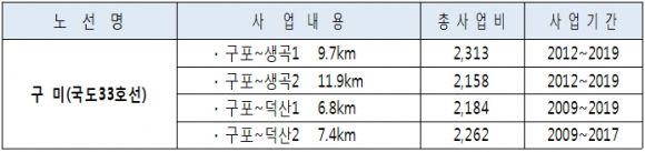 구미시 구포 ~ 칠곡군 약목면 덕산간 35.8km 4차로로 신설