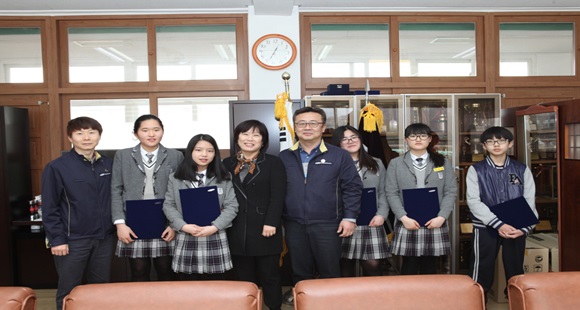 이성희 교장은 “장학금을 지원해 준 삼성코닝에 감사한 뜻을 전하며, 장학금에 담겨 있는 소중한 뜻을 깊이 새겨 학생들의 학력신장과 인성지도에 최선을 다하겠다.”고 말했다.
