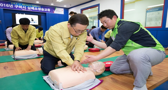 이번 교육은 응급상황 발생 시 시민의 귀중한 생명과 건강보전에 기여하고자 실시되는 구미시 특수시책으로, 남유진 시장이 첫날 교육에 참여해 1,600여 구미시 공직자 심폐소생술 교육의 힘찬 첫걸음을 내딛었다.