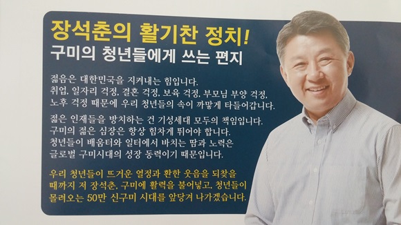 또, 청년에 대한 관심도 높다. 장 후보는 책자형 선거공보물을 통해 ‘구미의 청년들에게 쓰는 편지의 글’을 올렸다.