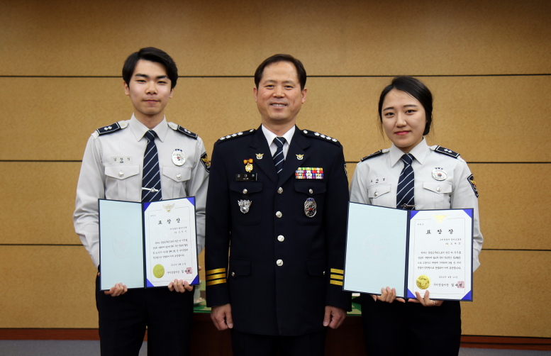 |  | | | ↑↑ (왼쪽부터) 김창식 순경, 김대현 구미경찰서장, 도다겸 순경 | |