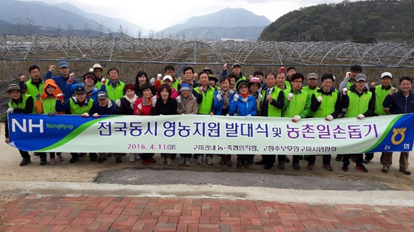 [구미IT뉴스] 구미 지역 농·축협 임직원 50여명은 4월 11일 본격적인 영농철을 맞이해 영농에 많은 어려움을 겪고 있는 농업인을 지원하기 위해 전국 각 지역에서 동시에 ‘범농협 전국동시 영농지원 발대식 및 농촌일손돕기’ 행사를 실시했다.