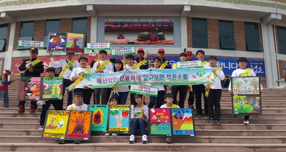 캠페인에는 학생들이 직접 제작한 산불예방 포스터와 구미국유림관리소의 산불피해 및 진화활동 사진을 전시했다.