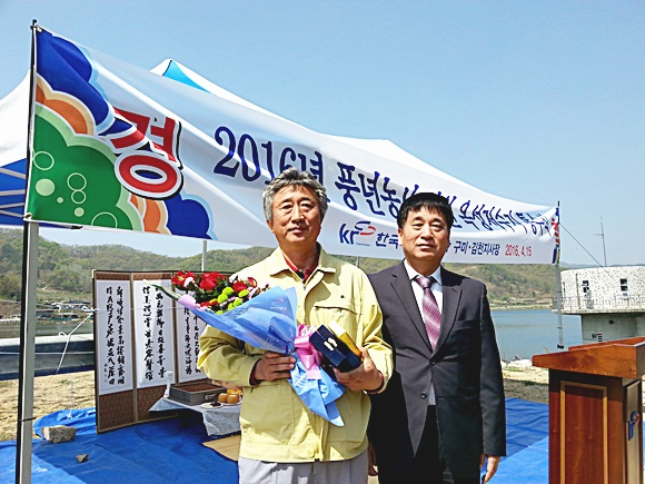 또, 오랫동안 농정업무에 종사하며 구미농업 발전에 공헌한 구미시청 농정과 윤상도 계장에게 한국농어촌공사 사장의 감사패를 전달했다.