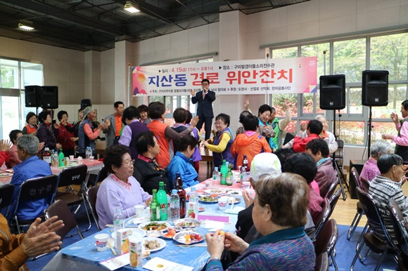 [IT뉴스]지산동은 4월 15일 구미발갱이들소리전수관 2층에서 지역 어르신 200여명을 모시고 지산동 경로위안잔치를 열었다.