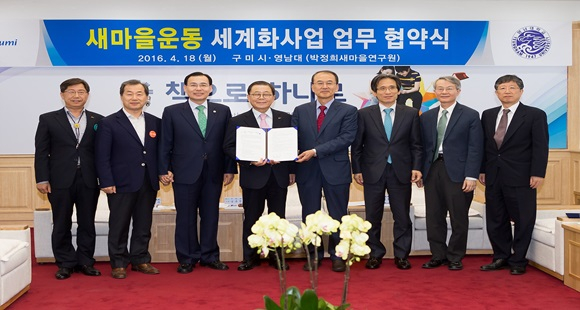 이날 행사에는 남유진 구미시장과 최외출 영남대학교부총장이 참석해 새마을 교육을 기반으로 지구촌 빈곤을 개선하고 더불어 잘사는 행복한 세상을 위해 새마을운동을 개발도상국에 확산 보급하고자 협력사업 협약을 체결했다.