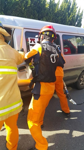 구미소방서, 승합차량 교통사고 발생 1명 구조