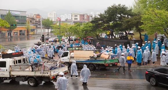 이 날 구미시는 농성 현장인 시청 앞에 300여명, 회사쪽에 400여명 등 모두 700여명의 직원을 동원 됐으며, 당시 노조원은 시청쪽에 7명 가량, 회사쪽에 50여명 있은 것으로 알려졌다.
